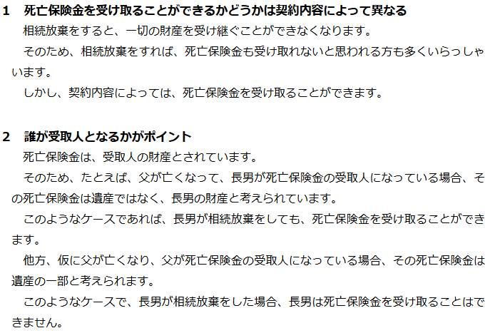 Q&A(目次)Q&Aトップ相続放棄と生命保険に関するQ&A 受付時間 平日 9時~21時、土日祝 9時~18時 夜間・土日祝の相談も対応します (要予約) 所在地 〒111-1111 ●町●●建物● 0120-41-2403 お問合せ・アクセス・地図